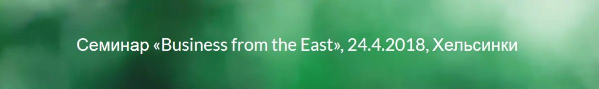 24 апреля 2018 года, 8:30–16:30, члены Совета директоров международного консорциума «Санкт-Петербургский кластер чистых технологий для городской среды»: Питиримов Николай и Белова Елена - креативный директор Кластера, приняли участие в работе бизнес-семинара «Business from the East», который прошел в Хельсинки (Finlandia Hall, Mannerheimintie 13 e), Финляндия. На семинаре был представлен практический обзор развития рынка «зеленой экономики» в водном и секторе эко-эффективности городской среды макрорегиона Санкт-Петербурга и Центральной Азии, показан практический опыт бизнеса и прошло обсуждение возможностей взаимодополняющего бизнес-сотрудничества между Финляндией, Латвией, Санкт-Петербургом и Центральной Азией.