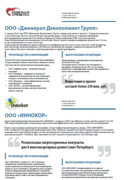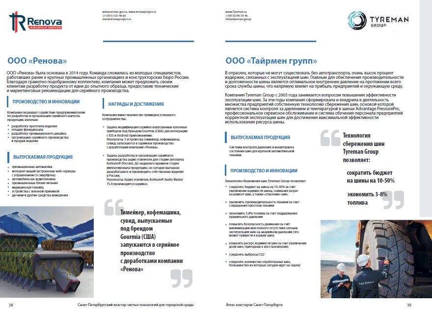 25 декабря 2018 года вышло издание Центра Кластерного развития Санкт-Петербурга «Атлас кластеров Санкт-Петербурга». В Атласе представлены 13 ведущих Кластеров Петербурга, включая Санкт-Петербургский кластер чистых технологий для городской среды. Издание поможет сориентироваться в высокотехнологичных проектах этих кластеров, узнать о знаковых результатах их деятельности и оценить потенциал сотрудничества. В последние десятилетия кластерная модель развития широко используется в промышленно развитых странах Европы и Азии. С ее помощью удалось мобилизовать новые ресурсы малых и средних предприятий, преодолеть ограничения конкурентоспособности крупных интегрированных компаний на современных динамичных рынках. На смену легкому доступу к сырью и недорогой рабочей силе, на первое место вышли наличие производственной базы и высококвалифицированных кадров.
