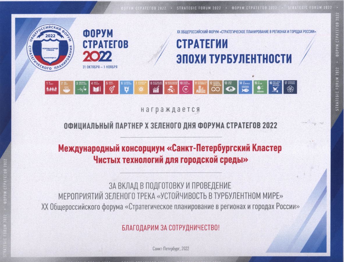 01 ноября 2022 года. В рамках юбилейного XX общероссийского форума «Стратегическое планирование в регионах и городах России» (30 октября - 1 ноября 2022 года, Санкт-Петербург, отель «Park Inn by Radisson Прибалтийская». Санкт-Петербург, ул. Кораблестроителей, д. 14,) прошел Форум экономики замкнутого цикла «От Балтики до Тихого океана».
