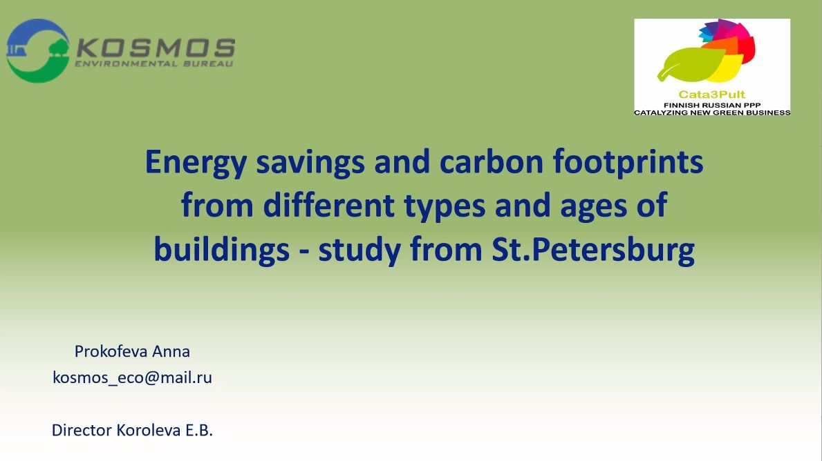 11:15-11:30 «Расчеты углеродного следа случаях из различных типов жилых зданий из Санкт-Петербурга», Анна Прокофьева, координатор проекта, ООО «Космос»