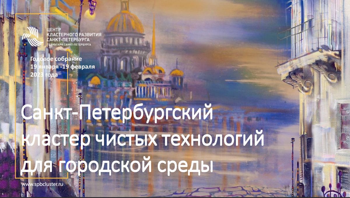 19 января (четверг) 2023 года с 15:00 до 17:00 (PM Москва) в помещении Центра Кластерного Развития АО «Технопарк Санкт-Петербурга» по адресу: Санкт-Петербург, Проспект Медиков, дома 3−5, литера, А (5 минут от ст. м. Петроградская) открылось общее собрания членов международного консорциума «Санкт-Петербургский Кластер Чистых технологий для городской среды».