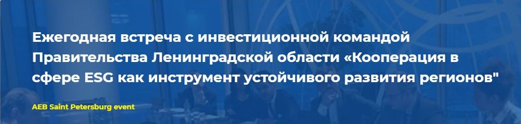 2 декабря 2021 года. Международный консорциум «Санкт-Петербургский Кластер Чистых технологий для городской среды» принял участие в ежегодной встрече членов Ассоциации Европейского бизнеса с инвестиционной командой Ленинградской области. Мероприятие было посвящено теме «Кооперация в ESG как инструмент устойчивого развития». В рамках мероприятия Кластер представил Балтийский промышленный симбиоз как ресурсное обеспечение развития экосистемы промышленного симбиоза в России на примере Санкт-Петербурга и Ленинградской области.