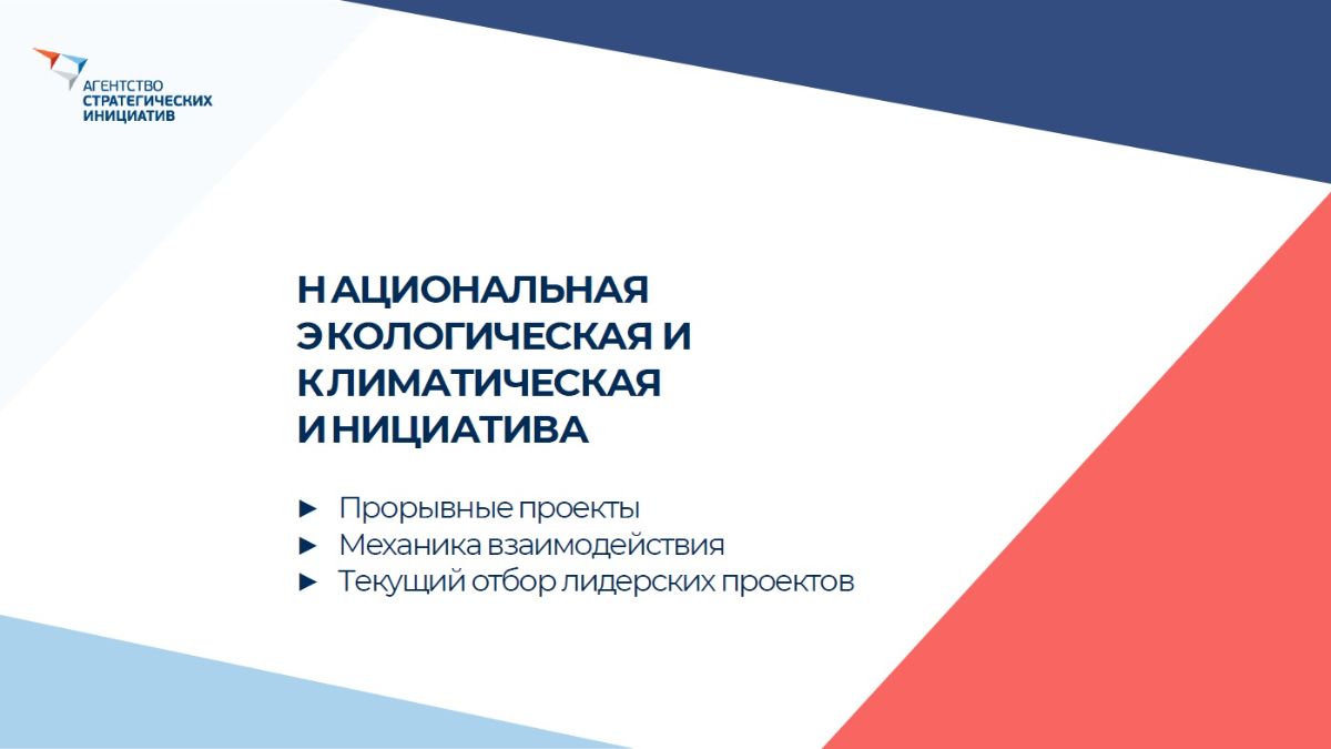 - О Национальной экологической и климатической инициативе (НЭКИ). О прорывных проектах, способствующих формированию здоровой среды, приумножению природы и климатической адаптации (территорий). Выступающий: Белозеров Георгий Александрович – заместитель генерального директора Агентства стратегических инициатив, направление «Экология и климат».